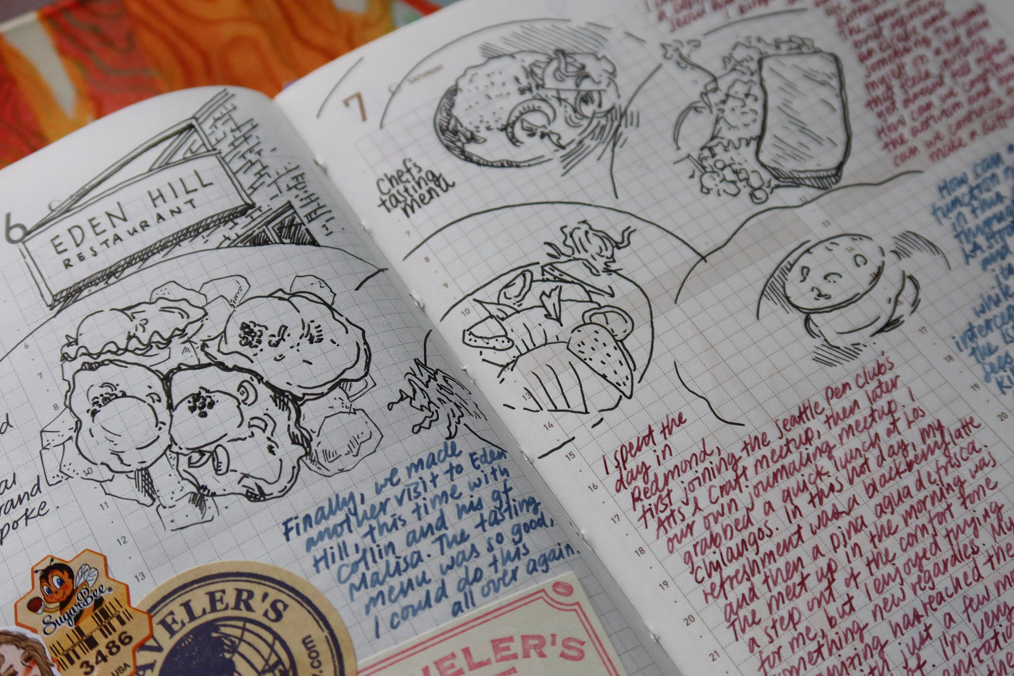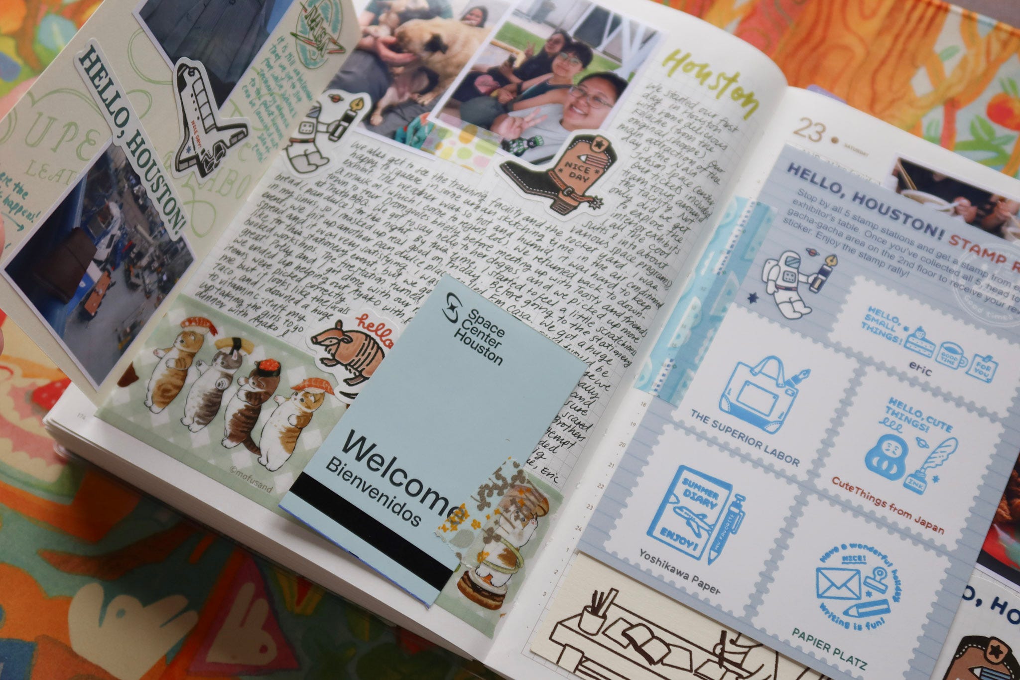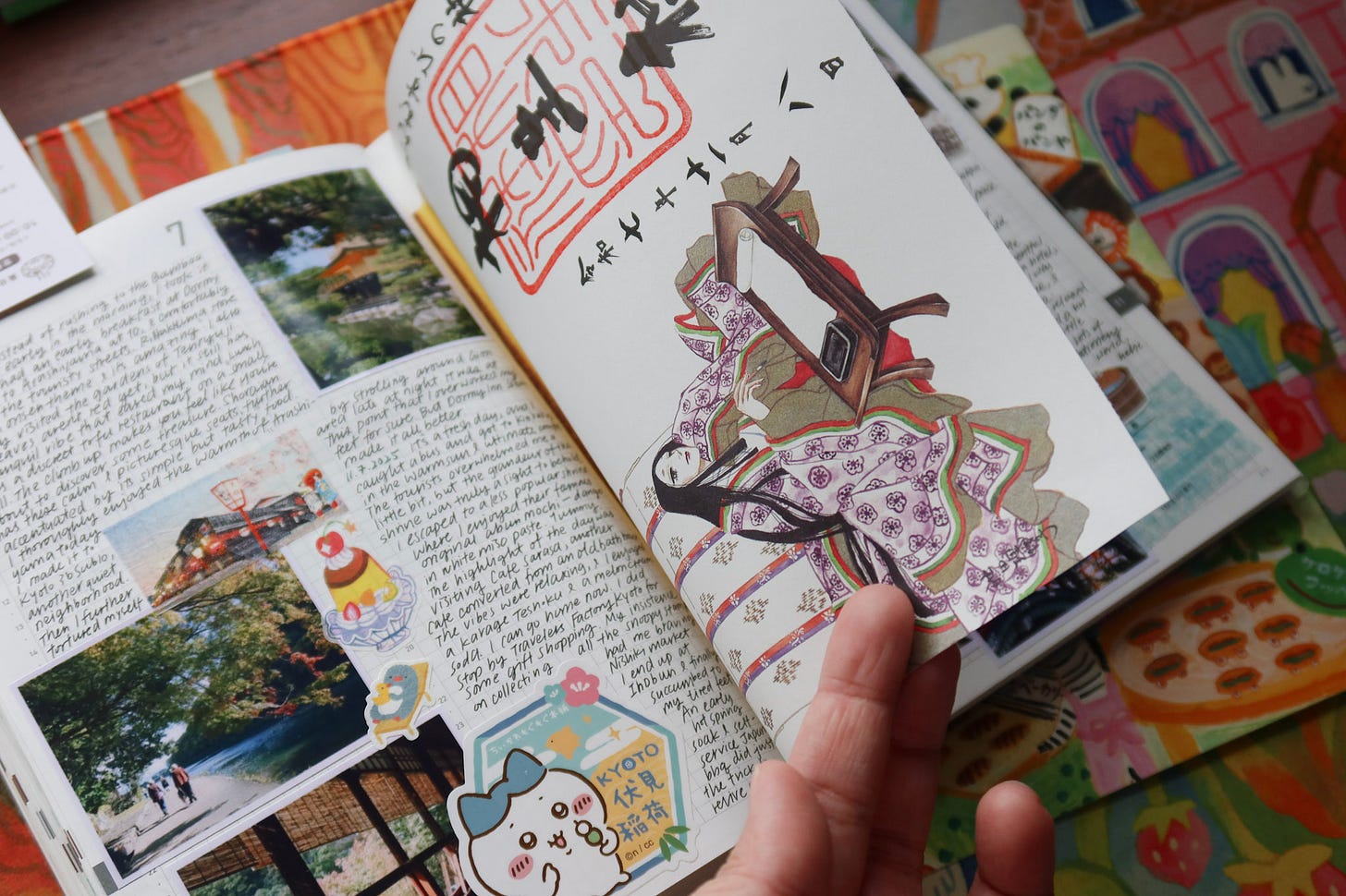 When I’m on the road traveling, I don’t carry this brick of a journal with me, and instead, I “catch up” at a later time and turn those days into a fun travel scrapbooking entry. I would print out photos from my phone and create collages on the page. The strong binding of the journal also allows me to tip in postcards, scrap paper, and ephemera that I collect on trips. Whenever I write about a trip, I feel giddy as if I’ve experienced the journey all over again.