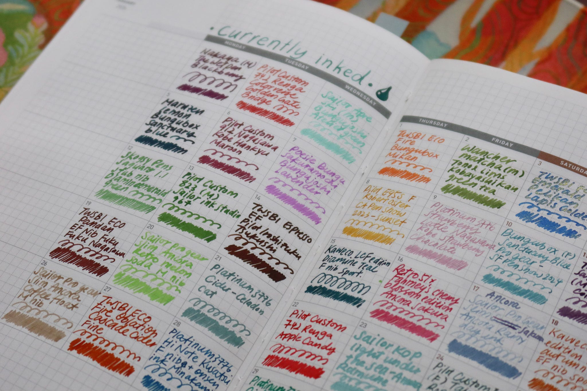Finally, the extra Monthly pages that were offered in the book were turned into my “Currently Inked” page, where I keep track of what ink is currently in my fountain pens.