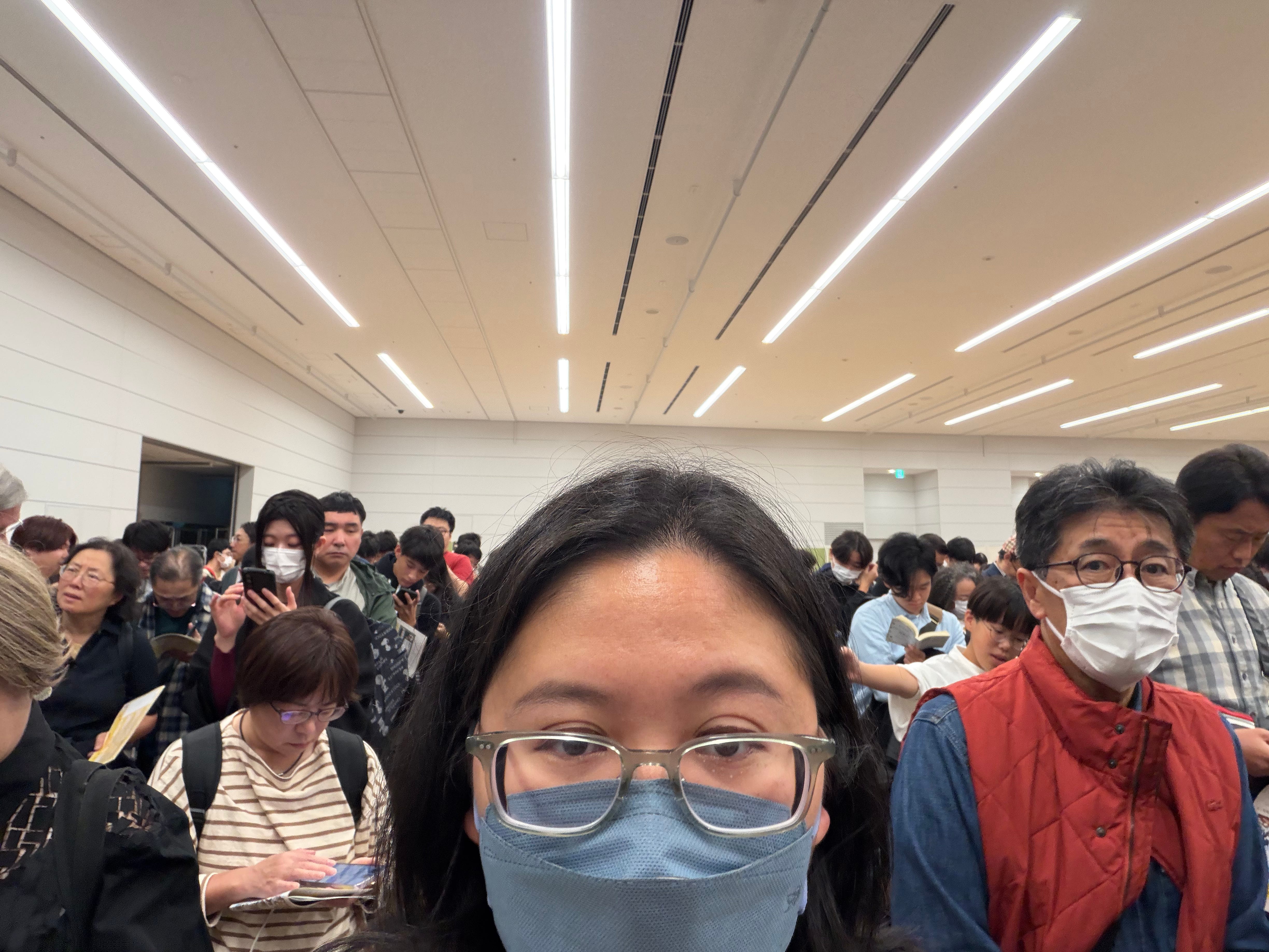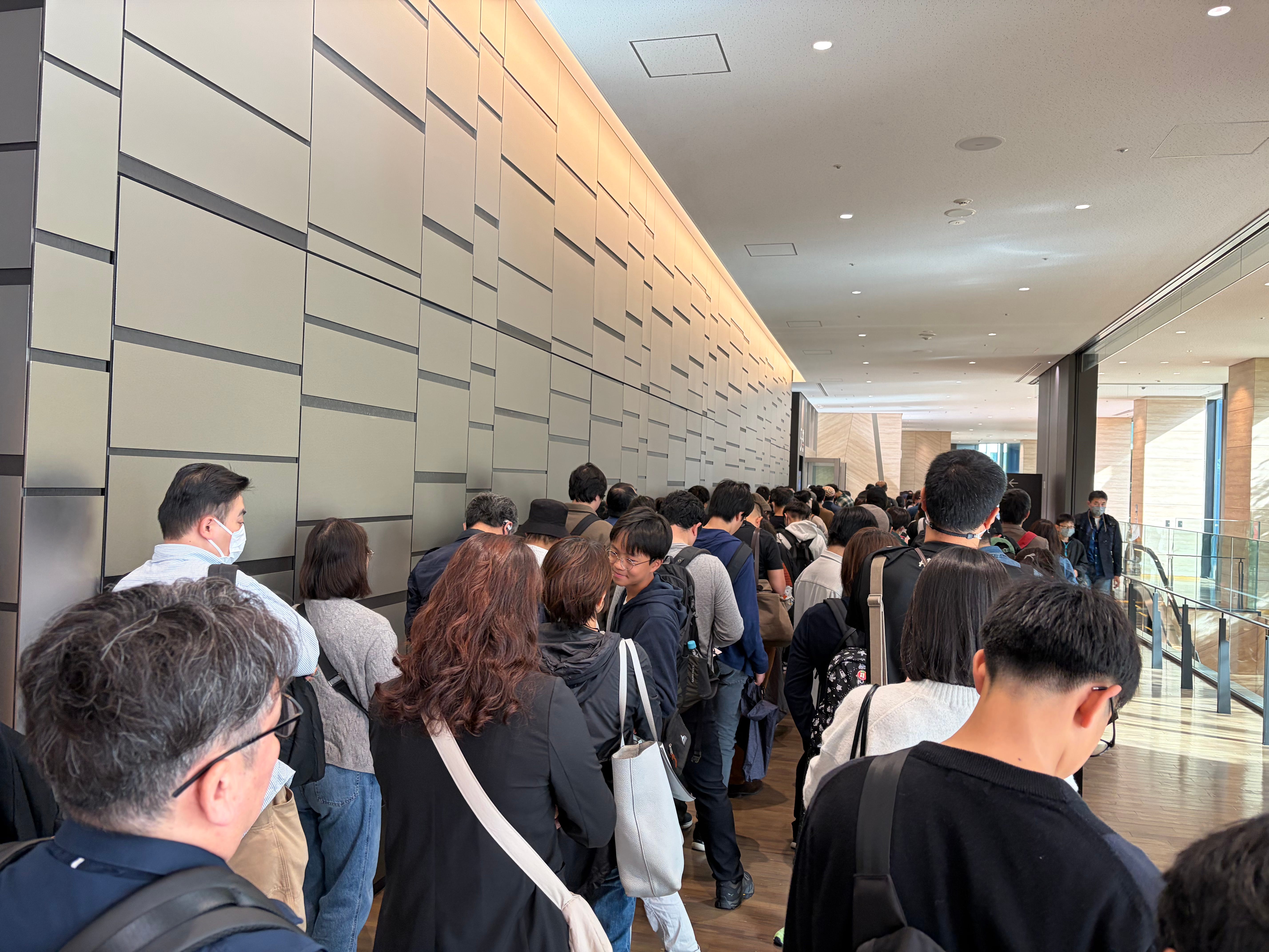 Since the ticket mentioned “order of your arrival”, I believe a lot of us took that to heart and ended up arriving a little earlier than the registration time to secure our spot in the queue. I was in Group A on 11/2, with an entrance time of 9:30, the first available. The registration time was between 8:30 - 9:10, and I arrived around 8:15 to a significant queue right at the entrance. At 8:25, the volunteers slowly navigated the single queue into a wider queue arrangement by having people spread into a 4-person wide queue.