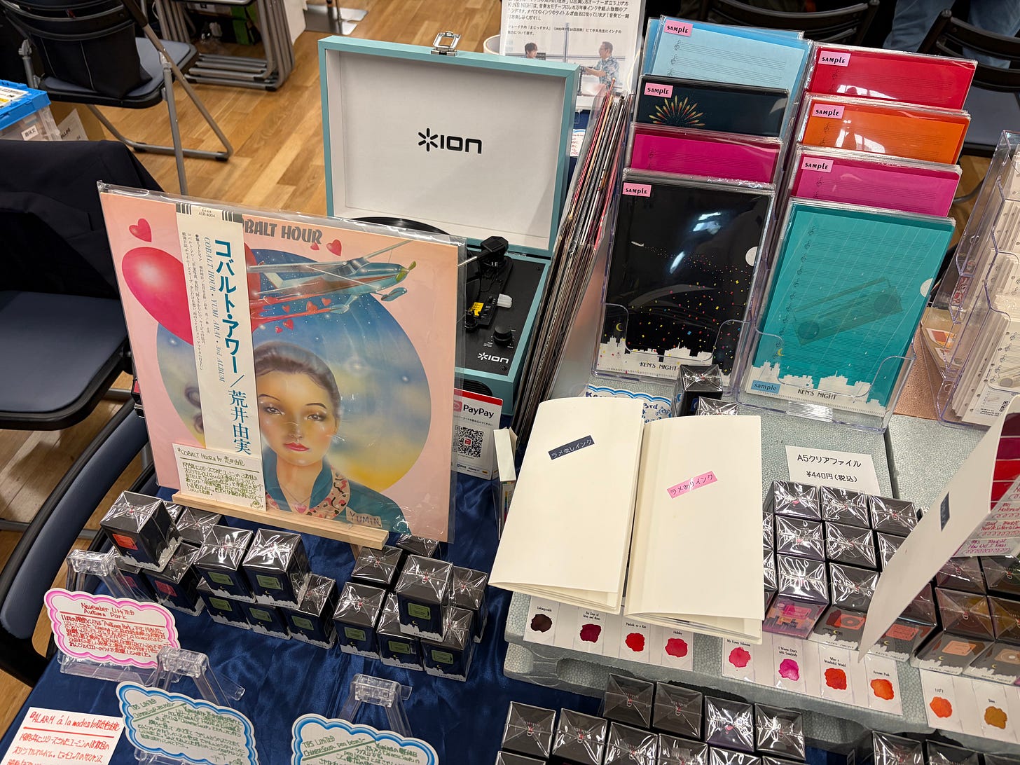 At the end of his table, a record player quietly spins and plays music. The ink labels were all designed to look like records, highlighting their track titles with matching colors. I bought a TIPS limited: “Chinese soup, pea pods”, which reflects the “Penguin Family Cooking Party” theme of TIPS this year. According to Ken, the track “Chinese Soup” is a country-style pop number from Arai Yumi’s third album, “COBALT HOUR.” The lyric sings: “If the pod is my heart, the beans are the men I’ve left.” What an interesting concept.