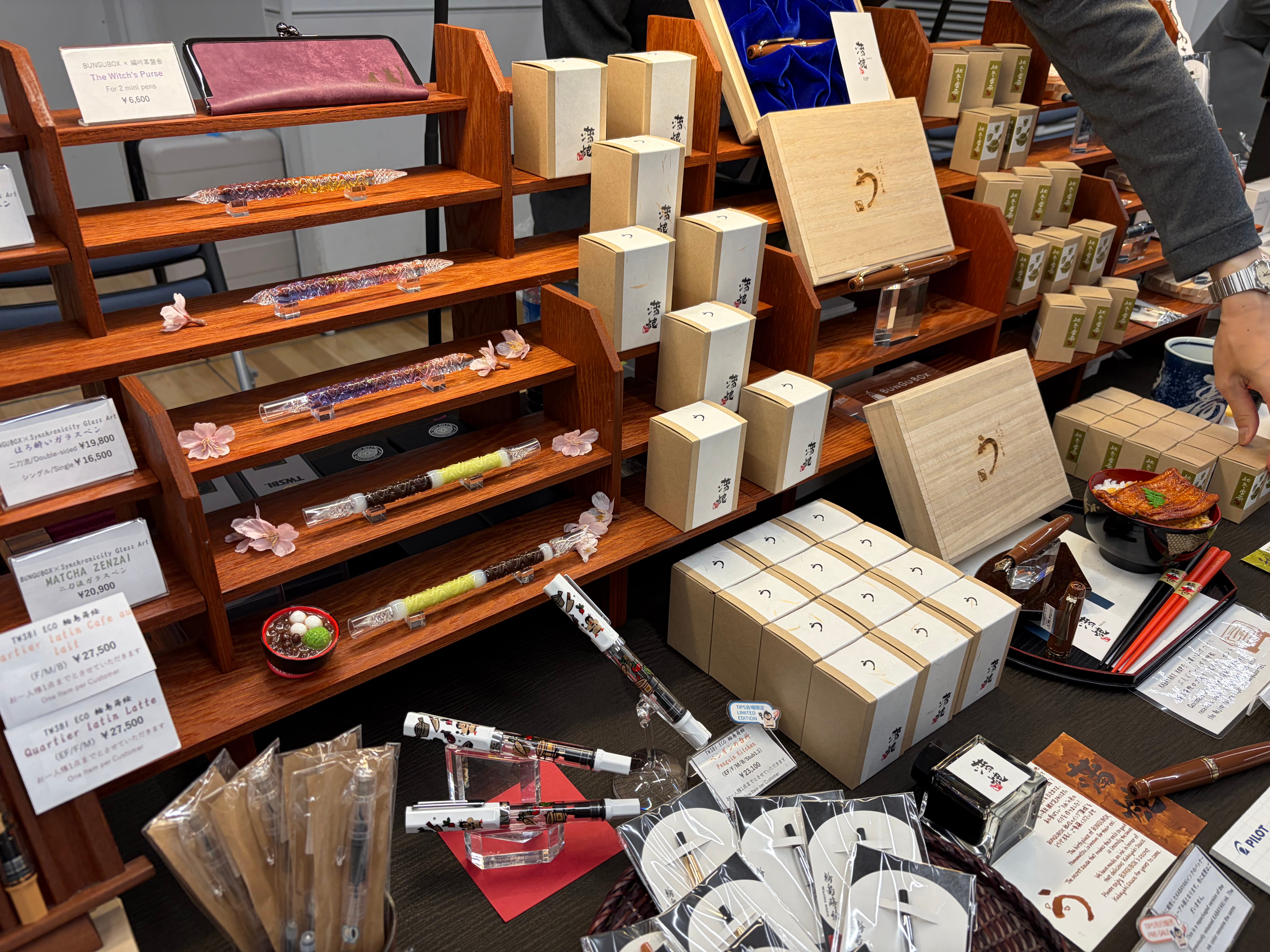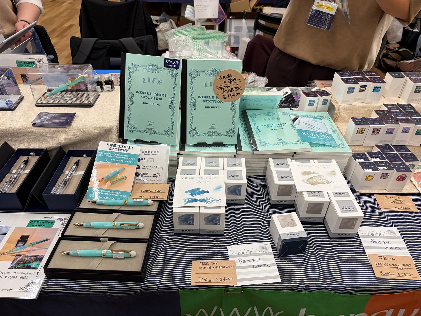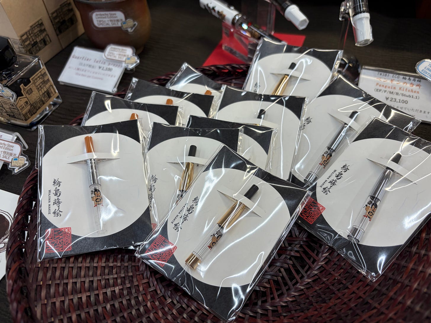 Kobayashi Bungukan was another stationery store I’ve always wanted to visit, based in Shizuoka. They brought an incredible selection of inks, featuring local food to hues inspired by traditional arts and literature. They even made an original series of gradient ink for Bechori, who’s known for his handwriting and calligraphy classes. I’ve been a huge fan of their store-exclusive pens, and in fact own quite a selection of their Sailor Pro Gear Slim Minis inspired by fruits and flora in the region. I started to admire a selection of Makie vanishing points, but forgot to circle back at the end of the show.