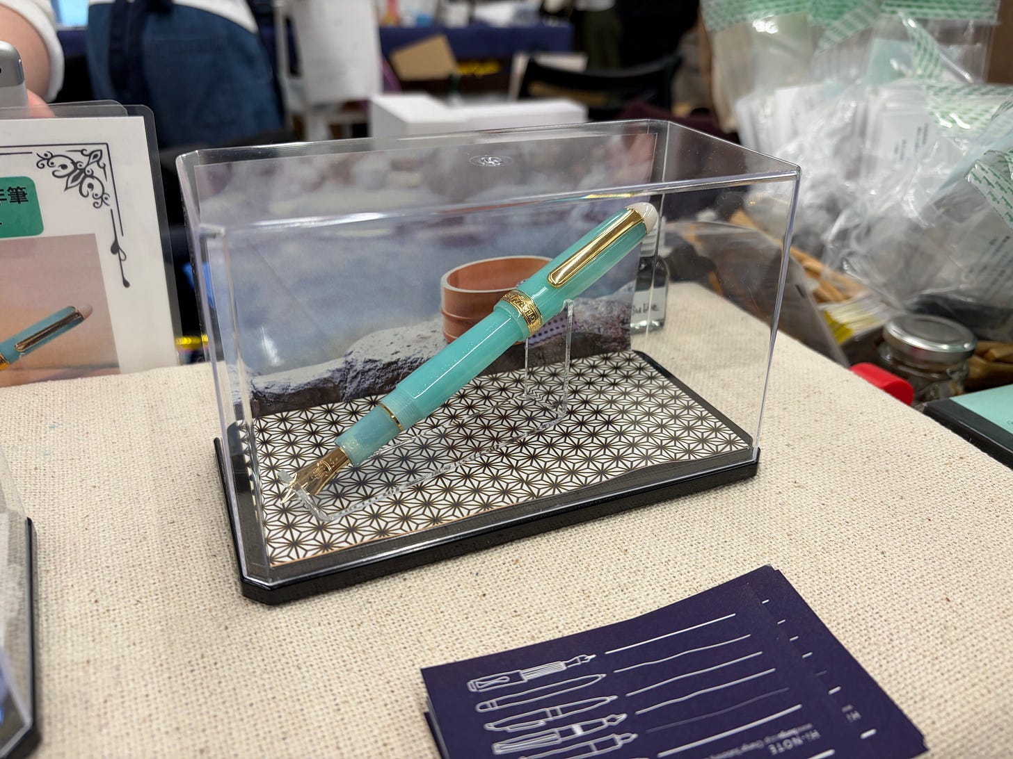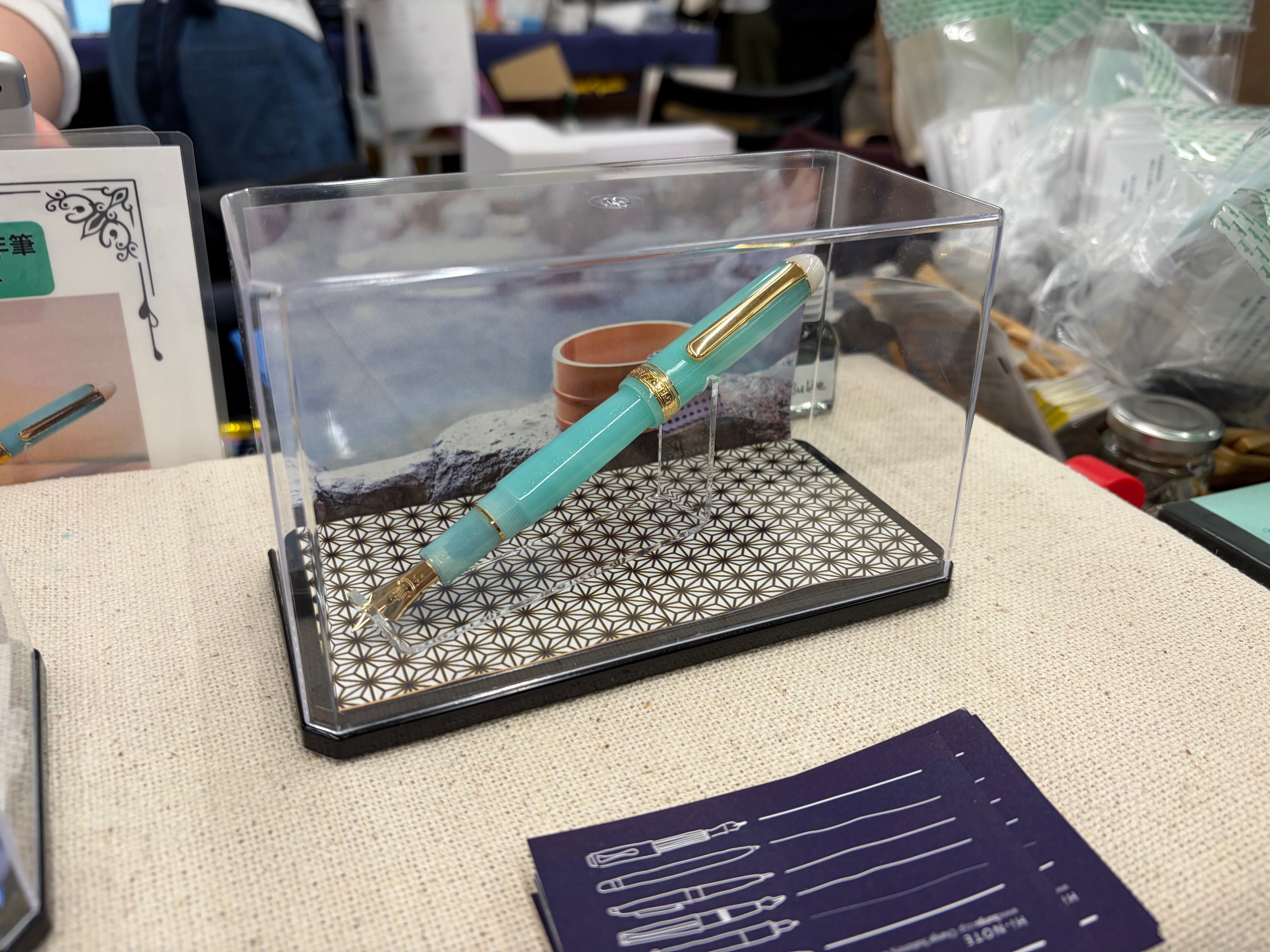 I made my way to Aun Glass Studio’s table at 11:45. After showing them my confirmation email, they offered me a seat to test out the glass pens I picked out on a piece of paper with ink. My heart was set on the new color first released at TIPS: “Blue Moment”, a soft gradient from orange to navy blue as the sun sets on the horizon. Some hazy white is woven into the blue part of the body, embodying wisps of clouds. They also had a selection of their “Four Seasons” glass pens, of which I almost bought the spring (pink and green), but decided to hold back last minute. My wallet has taken significant damage at this point, and it’s time to retreat.